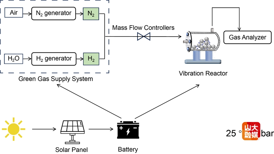 该团队还构建了全流程零碳排放的太阳能驱动的绿氨合成系统,其能耗较文献报道的“哈伯-博世”工艺缩小10倍。